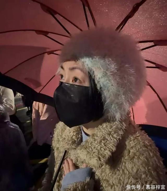 台北昨晚下雨,照片里小S打着雨伞,一身毛绒外套,戴灰色毛绒帽子,黑色口罩,看上去神情很悲伤。
