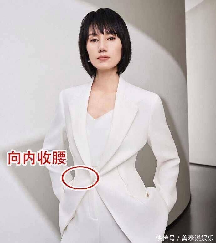 ①.收腰相比于过于宽松、紧身的衣物来说,版型剪裁利落,且从腰线处向内收,并留有3-5cm的空余量,这才是微胖女性显瘦的“天花板”。就像大家所离不开的西装外套来说,按照这样的版型挑选之后,既可以打破西装外套只能是职场中穿的刻板印象,又能让你微胖的身材看上去轻盈不少。