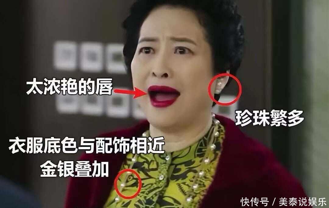 ②.优雅or俗气,关键看配色大家有没有同样的感受,明明首饰的色彩已经足够低调了,但与穿搭出现在同一个造型中时,却始终摆脱不了俗气,这个时候,真的应该看看你的衣服配色了,就像同部戏中罗子君妈妈,浓烈的红唇、艳丽的配色,就算是配上百搭性十足的珍珠也难逃俗不可耐的局面。